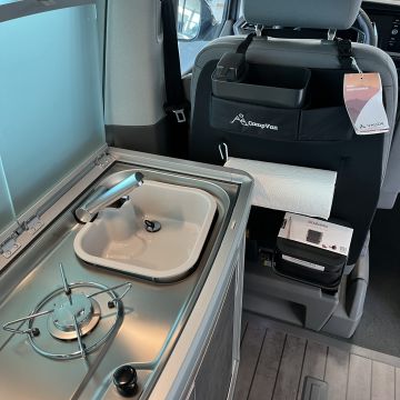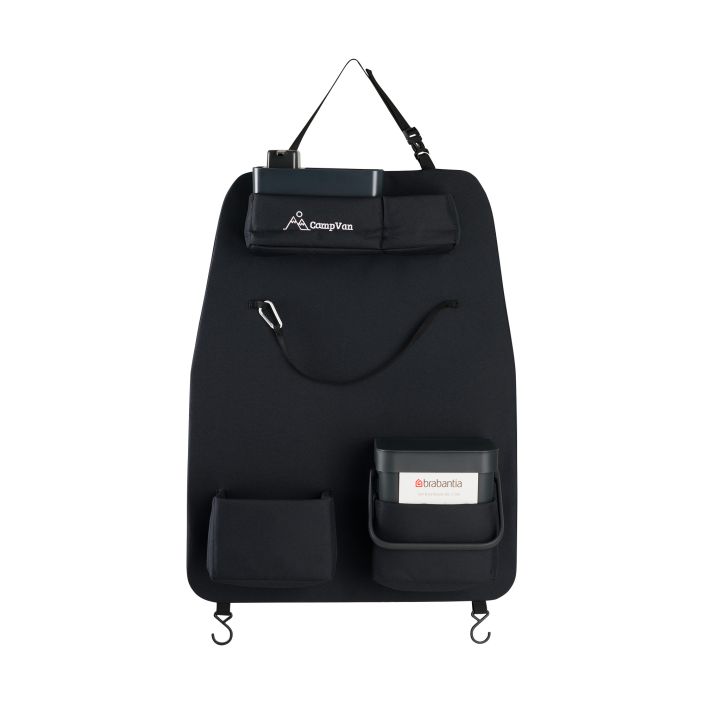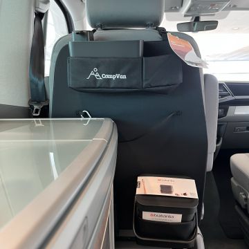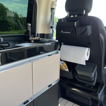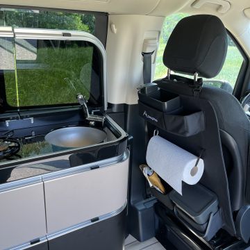 Endlich Ordnung in deinem Campervan! Denn gemeinsam mit VAUDE haben wir einen Organizer für die Rückenlehne des Fahrersitzes produziert. Das perfekte Tool für deinen Camper mit integrierter Küche, denn unser Organizer beherbergt einen Spülorganizer mit herausnehmbaren Spülmittelspender & einen 3-Liter-Mülleimer im unteren Teil. Zusätzlich kannst du am Strap in der Mitte eine Küchenrolle befestigen oder Geschirrtücher aufhängen.